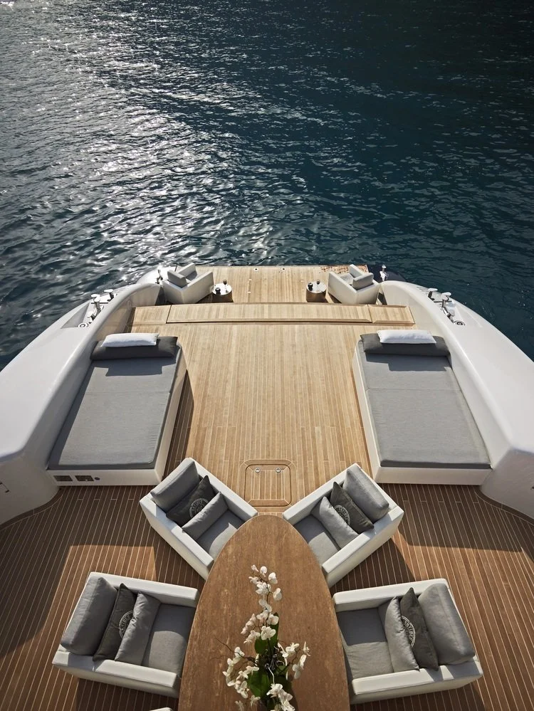 Sporty core and highest level of performance for those who love speed without sacrificing functionality. The external lines are sleek, light and eye-catching. The wide windows in the saloon provide a breathtaking view from the surface of the water and maximum brightness inside. Bespoke interiors to fit our clients taste.